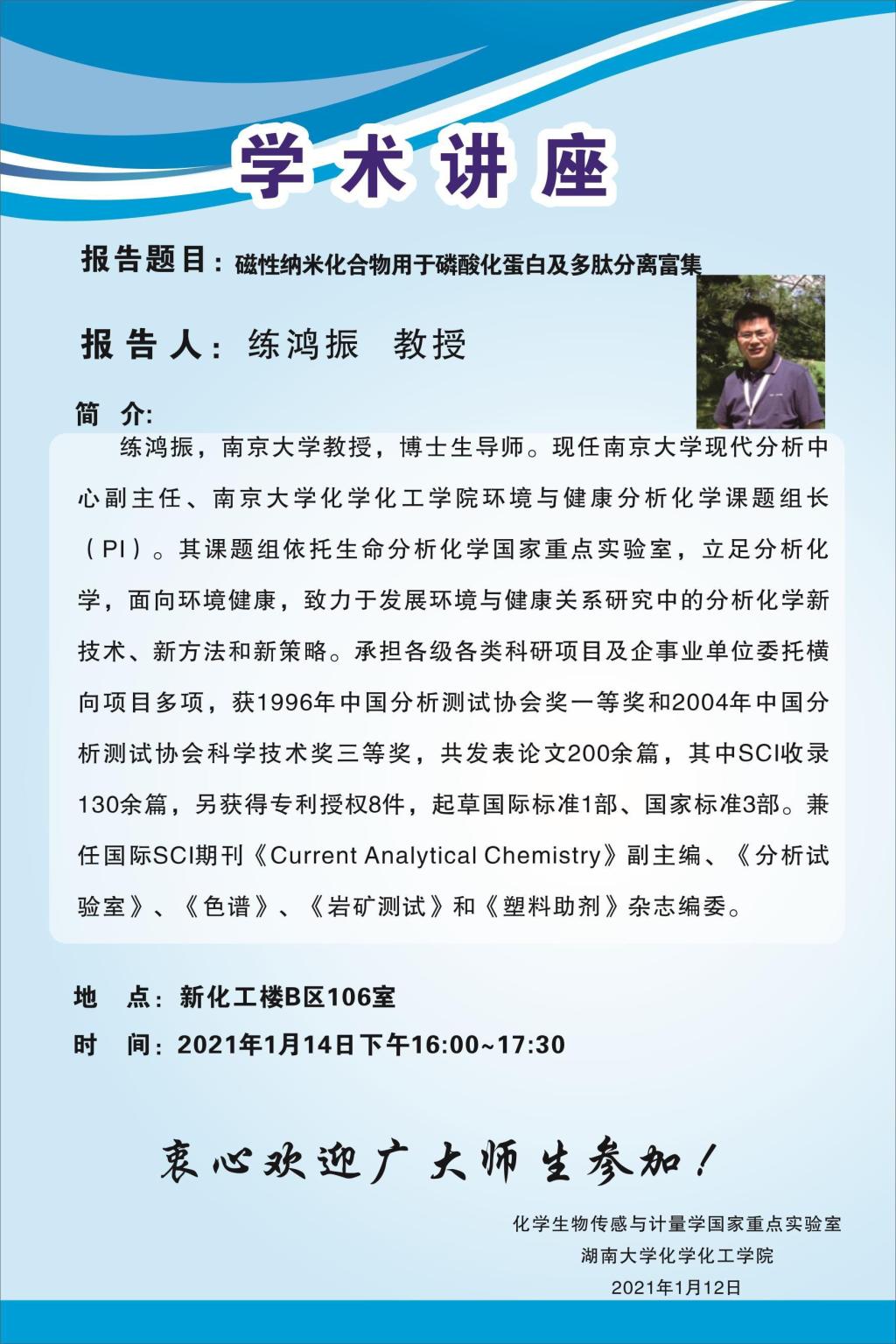 報告題目: 磁性納米化合物用于磷酸化蛋白及多肽分離富集