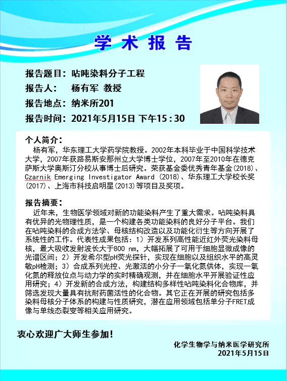 學術(shù)地點 納米所201 主講人 楊有軍 教授