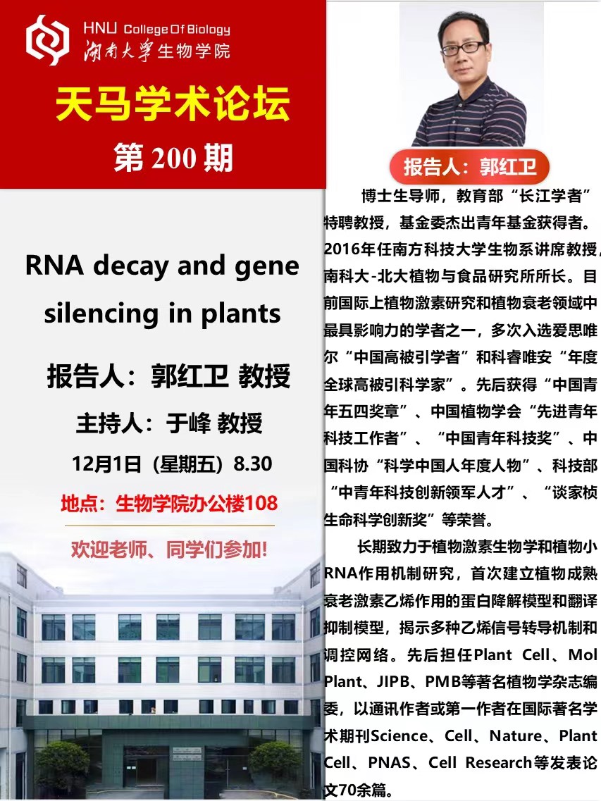 學術地點 生物學院辦公樓108 主講人 郭紅衛