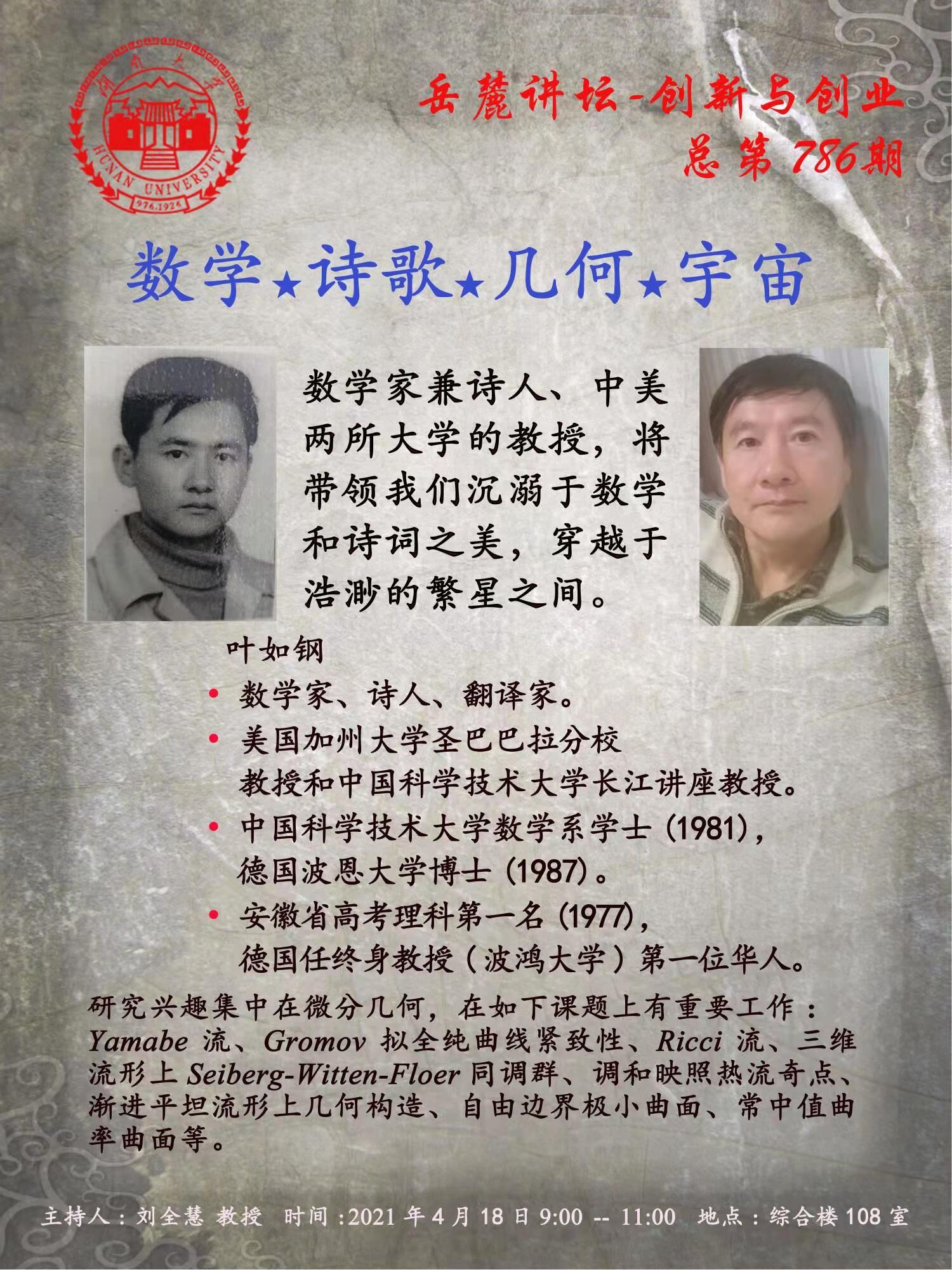 報告題目:數學★詩歌★幾何★宇宙