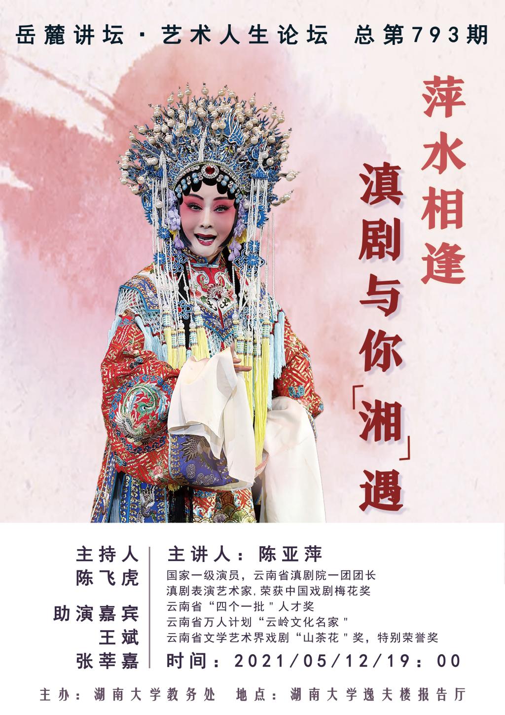 主講人:陳亞萍(國家一級演員,云南省滇劇院一團團長,滇劇表演藝術家,榮獲中國戲劇梅花獎、云南省“四個一批”人才獎、云南省“云嶺文化名家”、云南省文學藝術界戲劇“山茶花”獎、特別榮譽獎)