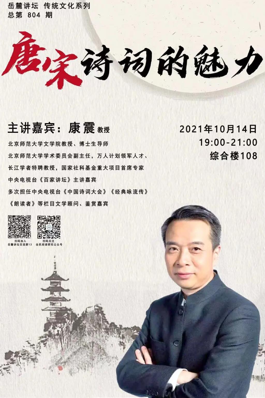 學術地點 綜合樓108 主講人 康 震 教授