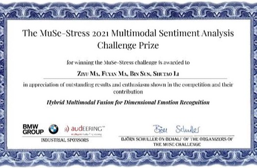 2021/11/01李樹濤教授團隊獲MuSe2021多模態連續情緒識別賽道冠軍日前,副校長、機器人學院院長李樹濤教授課題組團隊在多模態情感分析挑戰賽MuSe2021(The Multimodal Sentiment Challenge)獲得多模態連續情緒識別賽道冠軍。電氣與信息工程學院博士生馬子瑜和馬付嚴參賽,李樹濤... 2021/11/01李樹濤教授團隊獲MuSe2021多模態連續情緒識別賽道冠軍日前,副校長、機器人學院院長李樹濤教授課題組團隊在多模態情感分析挑戰賽MuSe2021(The Multimodal Sentiment Challenge)獲得多模態連續情緒識別賽道冠軍。電氣與信息工程學院博士生馬子瑜和馬付嚴參賽,李樹濤...