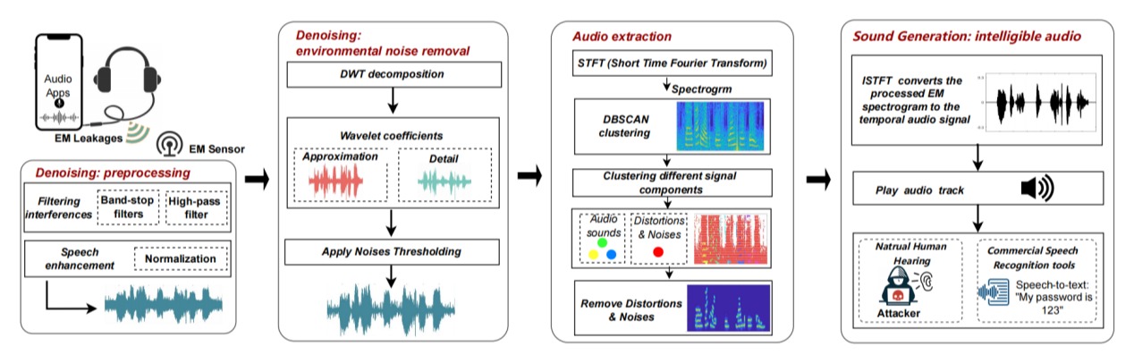 2023/07/04胡玉鵬、靳文強教授團隊在移動設備語音泄漏研究中取得進展近日,胡玉鵬教授、靳文強教授團隊在移動設備系統安全研究領域取得突破進展,首次發現了移動設備音頻電路放大器的低頻電磁輻射所導致的用戶語音信息泄漏問題。通常,移動設備端音頻電路產生的音頻信號可通過有線...