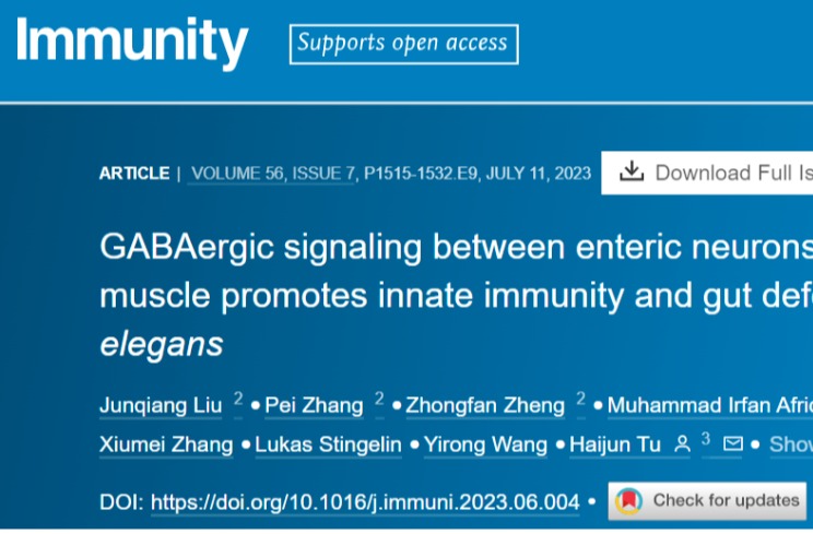 2023/07/15生物學院涂海軍教授團隊在腸道神經元調控腸道固有免疫研究方面取得進展神經系統對腸道內穩態和功能至關重要,但關于其對腸道固有免疫的影響及其調控機制還不完全清楚。正常的腸道功能依賴于腸神經系統和腸道內固有淋巴樣細胞的高度協調反應,腸神經元可以與腸組織中的其他細胞建立功... -